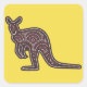 Australian kangaroo silhouette in tribal / ethnic mosaic pattern on yellow background
