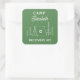 Autocollant carré Kit de récupération personnalisé pour enterrement de vie de jeune fille en camp.