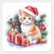 Sticker Carré Kitten Père Noël orange et blanc avec présentateur