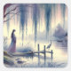 Sticker Carré Lac Serene Imaginaire avec saule et héron
