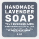 sticker à savon lavande moderne et minimaliste fait main avec votre nom et votre site ou adresse en blanc simple typographie stylisée sur un arrière - plan sombre bleu foncé. Ajoutez simplement votre nom d'entreprise, le nom du produit, les ingrédients, le poids et votre site Web ou adresse au étiquette. Conçu exclusivement pour vous par Happy Dolphin Studio. Si vous avez besoin d'aide ou de produits correspondants, veuillez nous contacter à happydolphinstudio@outlook.com .