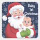 Sticker Carré Le Père Noël tient un bébé 1er Noël