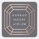 Marquez votre entreprise de conception de bijoux avec ces élégants autocollants avec une illustration géométrique en pierre de taille en feuille d'or faux rose sur un arrière - plan gris moyen raffiné, avec votre nom ou nom d'entreprise à l'intérieur en lettres blanches modernes.