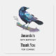 Anniversaire merci autocollants avec un joli dessin aquarelle d'un corbeau. Le bleu foncé et les couleurs violettes vives accentuent la beauté de cet oiseau.