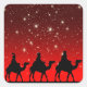 Les Magi sur leur chemin vers Bethléem est montré sur cet autocollant de vacances carré, prêt à décorer vos paquets dans le style.