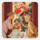 Des autocollants de Noël vintage amusants avec trois enfants curieux qui regardent maman embrasser le Père Noël.
