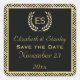 Noir, or clé grecque et mariage de la couronne de laurier Enregistrer l'autocollant Date avec initiales ou votre monogramme avec une couronne de laurier et une bordure avec clé grecque ou Meander ou la frontière grecque fret motif en or et noir. Ce design élégant et vintage de l'ancien monde est parfait pour un thème mariage grec et/ou grec où qu'il se déroule en Grèce ou ailleurs. Il s'agit d'une partie modèle entièrement personnalisable d'un ensemble mariage. Il peut aussi être fait en grec ou en langage bilingue.