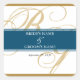 Sticker Carré Mariage de monogramme or Blue Elegant