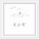 Un autocollant de mariage simple, classe et élégant, avec les monogrammes du couple sur un imprimé d'encre d'une scène d'eau avec des vagues, un petit bateau et des mouettes. Un beau choix pour un mariage à la plage, un mariage de plage, un mariage côtier, un mariage de lac, un mariage de bord d'eau, un bateau ou un mariage de yacht, ou un mariage de croisière.