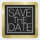 Carré noir avec bordure en faux or et SAVE THE DATE dans un style de police mince et élégant