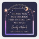Mystique Arc en ciel foncé Marine Bleu Soleil Lune Étoiles Astronomie Céleste Galaxie Cosmique Espace Mariage Faveur Stickers dispose d'un arc-en-ciel coloré soleil, lune et étoiles cadre sur un arrière - plan bleu marine foncé. Personnalisé avec un message de "Merci". Parfait pour les mariages et les fêtes. Personnalisez en modifiant le texte dans les zones de texte fournies. Conçu pour vous par Evco Studio www.zazzle.com/store/evcostudio
