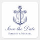 Sticker Carré Mariage nautique Marine Ancre bleue Enregistrer la
