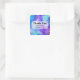 Sticker Carré Mariage spatial violet et bleu Galaxy Merci