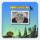 Sticker Carré Mask of Old Man, Flying Witch and Jack o Lantern