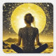 Joli art de l'air céleste représentant une méditation femme sous une pleine lune entourée d'étoiles.