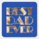 Sticker Carré Meilleur papa jamais Blue Faux Gold Foil Typograph