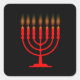 Une menorah avec sept bougies allumées sur un arrière - plan noir