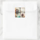 Un caractère fantaisiste avec de grands yeux et des cheveux pointus occupe le quadrant supérieur gauche, tandis que des fleurs vibrantes remplissent le bas droit. L'oeuvre est divisée en quatre quadrants, avec un effet de papier déchiré séparant chaque section et un arrière - plan vieilli texturé à travers tout.