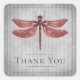 Sticker Carré Merci de Mariage de libellules à bijoux rouges