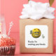 Un autocollant pour promouvoir le lavage des mains. Avec un joli visage souriant disant "Merci de vous laver les mains"