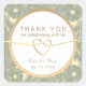 Moderne, élégant, botanique, vert sauge et or mariage merci autocollant, avec coeur de corde et dentelle fleurie.