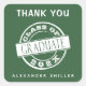 Un diplômé vert moderne vous remercie les autocollants avec un libellé blanc "classe" à l'intérieur d'un cercle qui ressemble à un timbre. Entrez simplement le nom du diplômé et l’année d’obtention du diplôme. Vous pouvez modifier la couleur de l'arrière - plan en cliquant sur le bouton personnaliser. Des produits de coordination sont disponibles dans notre magasin.
