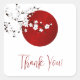 Un joli cerisier blanc fleurit devant un soleil levant rouge. Avec un texte de remerciement dans un élégant script manuscrit.