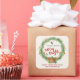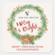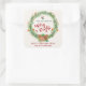 Un autocollant de Noël personnalisé avec une couronne d'aquarelle. Seringues de pin vert, cônes de pin et baies décoratives composent cette couronne festive. À l'intérieur de la couronne sont quelques ornements décoratifs et les mots" mai vos jours être Joyeux et lumineux. Écrit dans une police rouge tendance.