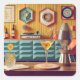 Sticker Carré Mid Century Atomic Retro Futuristic Party Room