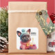 Sticker Carré Mignonne bulldog française, robe rose, gâteau d'an