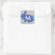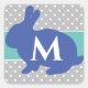 Sticker Carré Mignonne lapin bleu sur Pois gris Monogramme