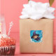 Cet autocollant carré présente un petit garçon fantaisiste qui s'amuse dans son voyage terminé dans une impression peinte à l'huile.