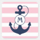Bandes nautiques rose rose avec ancre bleu marine et monogramme.