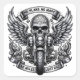 Cette oeuvre remarquable représente une moto personnalisée ornée d'un crâne proéminent, symbolisant l'intrépidité et l'aventure. Flanquée d'ailes majestueuses, la conception véhicule un sentiment de liberté et de rébellion. Une bannière au-dessus de la moto montre des phrases audacieuses qui mettent l'accent sur un mode de vie insouciant, encourageant les coureurs à adopter la spontanéité sans les limites des plans ou des règles. Les éléments détaillés créent une puissante représentation visuelle de la culture de la moto.