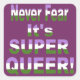 "Never Fear It's Super Queer" dans Transgender Genre Queer Pride couleurs drapeau (violet, vert et blanc) avec symbole transgenre