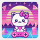 un chat kawaii avec une torsion d'onde de vapeur des années 80.