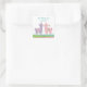 Sticker Carré No Drama Llama rose violet Turquoise Nom École
