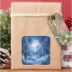 Un bel autocollant de Noël à ajouter à vos cartes de Noël ou cadeaux d'une scène boisée bleue d'arbres, de neige et d'une rivière