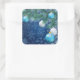 Un très joli autocollant blanc carré de Noël avec des flocons blancs tombant d'un ciel bleu magique. Les branches vertes de pins de Noël et les boules blanches et bleues de Noël lui donnent un air festif. Un cadeau de Noël parfait pour vos proches
