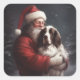 Sticker Carré Noël festif Springer Spaniel Santa Claus