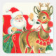 Autocollant Carré rétro vintage Noël Père Noël renne