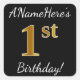 Sticker Carré Noir, Faux Or 1er anniversaire + Nom personnalisé