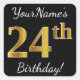 Sticker Carré Noir, Faux Or 24e anniversaire + Nom personnalisé
