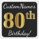 Sticker Carré Noir, Faux Or 80e anniversaire + Nom personnalisé