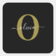 Sticker Carré Nom de script de monogramme personnalisé noir blan