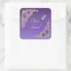 Sticker Carré Noms des mariés Fleurs mauves et blanches