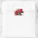 Cet autocollant exquis présente deux oeillets rouges sur un arrière - plan en brocart blanc nacré.