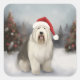 Sticker Carré Old English Sheepdog en Noël de neige