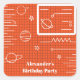 Mignons autocollants d'anniversaire thème de l'espace pour la fête d'anniversaire de votre enfant. Ajoutez-les dans vos faveurs de fête ou donnez-les comme un gardien. L'arrière - plan représente un écran d'ordinateur orange où tous les éléments en couleur blanche s'affichent, y compris le texte à customiser. Personnalisez-le avec votre propre message. Illustré et dessiné par Patricia Alvarez.