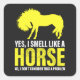 Sticker Carré Oui, je sens comme un cheval en jaune